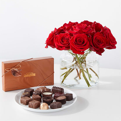 Includes a gift box of 15 Rocky Mountain assorted chocolates and signature Smoldering Rose scented candle.